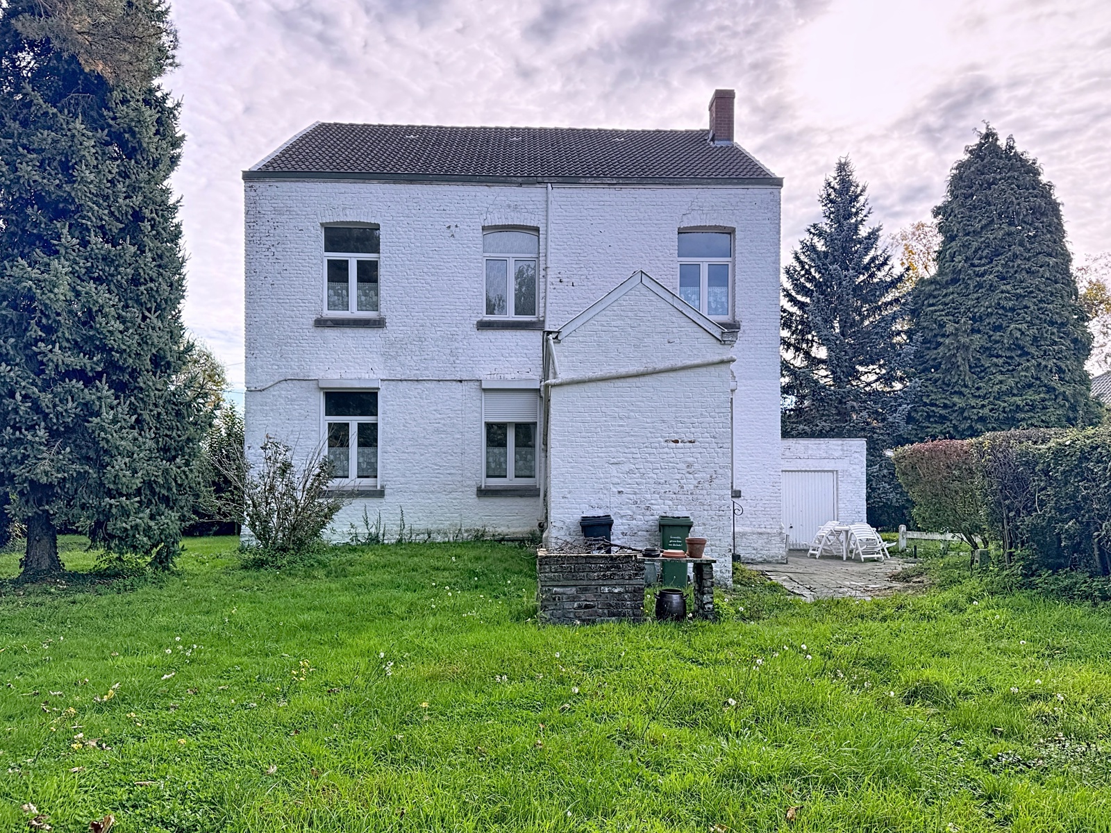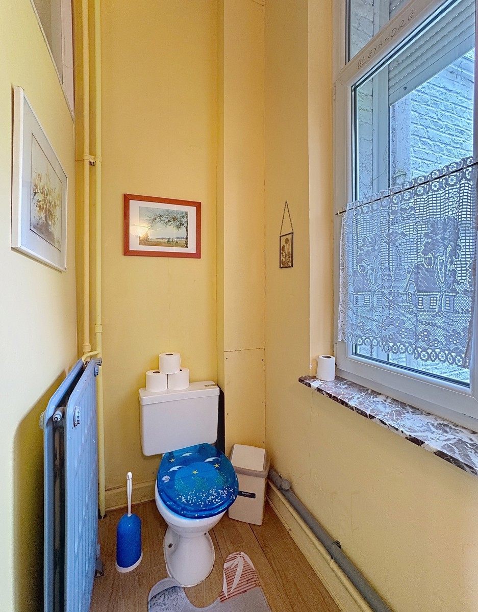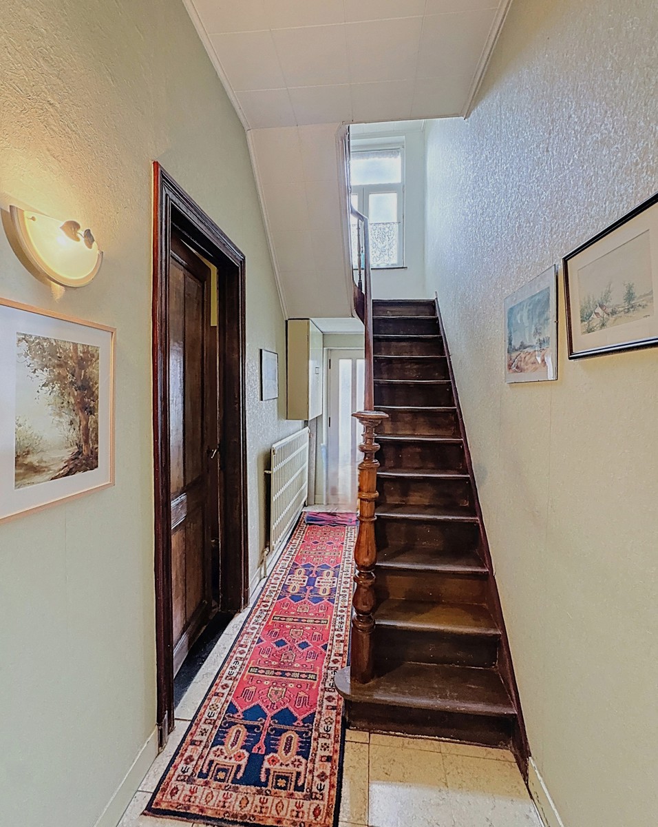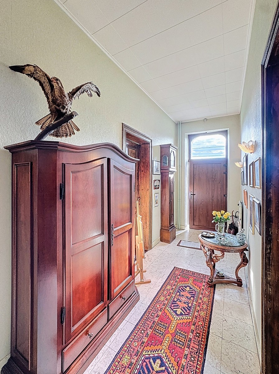 Située au centre d’Awans, à deux pas des commodités, maison de caractère 4 façades érigée début du siècle dernier. D’une superficie habitable de 245 m², elle offre un large choix d’aménagements. Cette dernière est composée comme suit : Rez (hauteur sous plafond 3,35 m) : hall d’entrée, salon/salle à manger 41 m² (cassette à bois), cuisine semi-équipée 10 m², buanderie/WC séparé, chambre 14 m² et bureau à l’entrée (17 m²). Possibilité de créer une profession libérale ou de cumuler vie privée et professionnelle ! À l’étage (structure plancher d’origine) : hall de nuit, 4 chambres (de 14 à 20 m²), bureau ou débarras 6 m², salle de bains 10 m² (WC, baignoire, vasque). En sous-toiture (non isolée) : 70 m² de grenier à aménager selon vos envies ! Garage avec double accès (pour un véhicule, volet électrique). Sous-sol : 2 vastes caves saines. À l’extérieur : terrasse de 55 m², jardin tout autour de la bâtisse (1.400 m², possibilité de subdiviser la parcelle en 2 ou en 3). Toiture en bon état (tuiles), chauffage central au mazout, installation électrique non conforme (bi-horaire), châssis S.V. bois avant / D.V. PVC à l’arrière (+ volets), boiler récent, raccordement à l’égout. Largeur façade de la maison 14 m, largeur terrain de gauche 13 m, largeur terrain de droite 12 m. Idéale également famille nombreuse, maison de type kangourou ou colocation! PEB indice G. Libre à l’acte. 04/246.33.46 - 0477/64.69.38 (Angelo Ponente). Informations non contractuelles et données à titre indicatif.